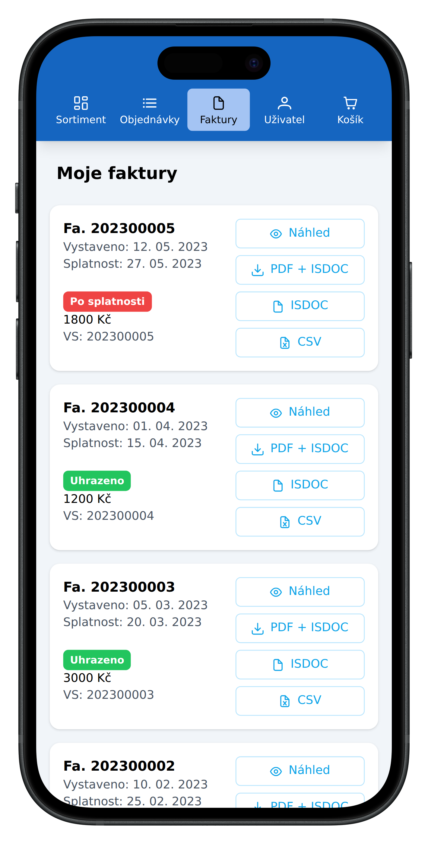 Zákazník má přehled o svých objednávkách, fakturách, platbách, stavu objednávek atd.